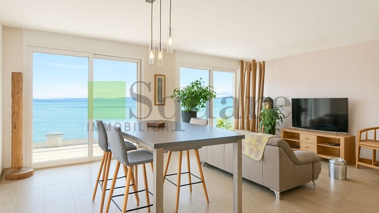 Situé à deux pas du lac et de la gare de Veytaux-Chillon, ce bel appartement séduit par ses volumes, sa luminosité et sa terrasse offrant une vue directe et imprenable sur le lac.