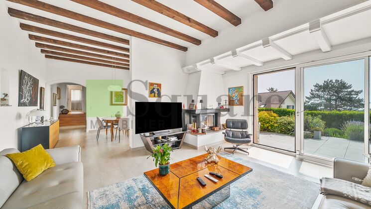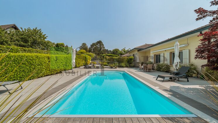 Découvrez cette magnifique villa individuelle de 7 pièces avec piscine et vue sur le lac, idéale pour une famille recherchant espace, confort et tranquillité, à seulement 6 minutes de l’entrée d’autoroute de Morges.