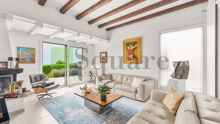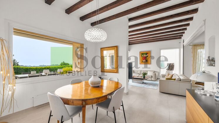 À l’extérieur, vous profiterez d’un superbe jardin arboré de plus de 1'328 m², d’une grande piscine, ainsi que de deux terrasses idéalement orientées pour profiter de la vue et du soleil. Deux box individuels et un espace de stationnement extérieur pour environ 5 véhicules complètent ce bien.