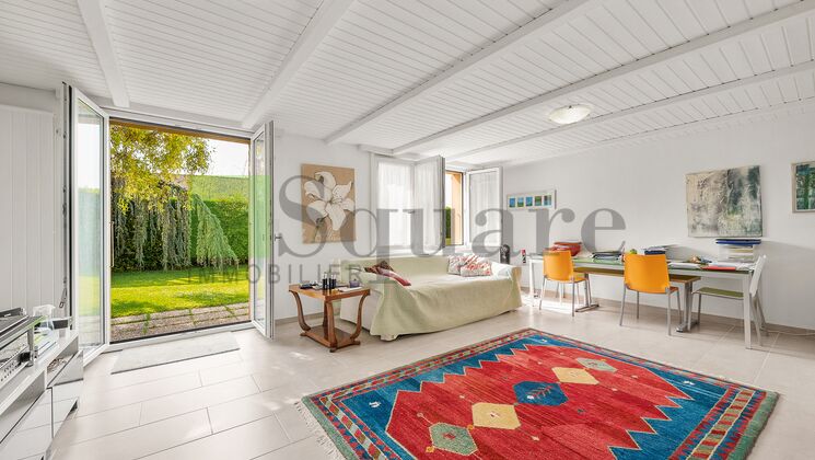 Érigée en 1969, la villa a été entièrement rénovée et agrandie en 2013, ce qui lui confère un état d’entretien irréprochable. Située dans un quartier résidentiel ensoleillé, elle bénéficie d’un calme absolu, d’une belle intimité et surtout d’une agréable vue sur le lac, que ce soit depuis les pièces de vie ou le jardin.